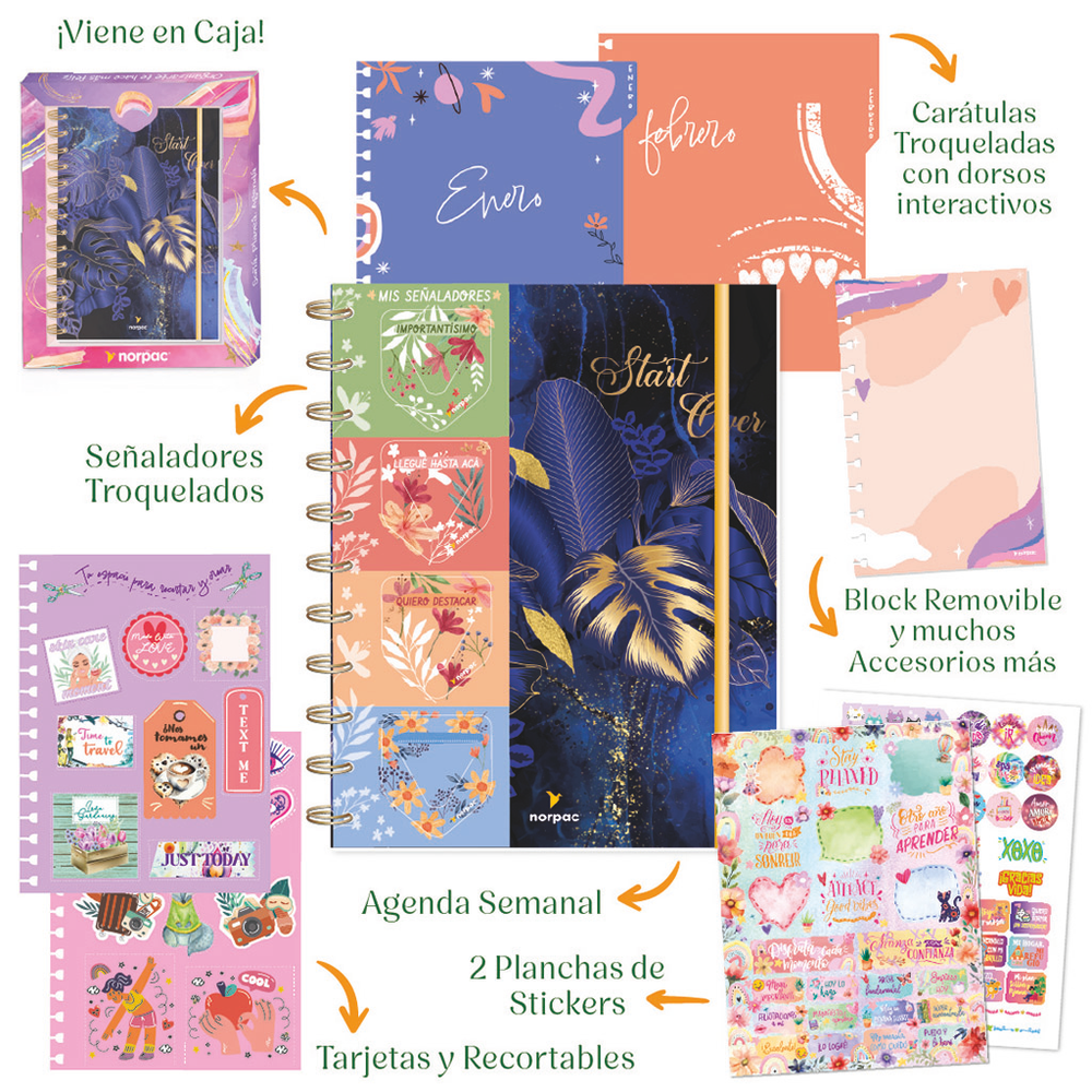 AGENDA N8 SEMANAL CON ANILLOS Y CIERRE NORPAC 8000 PREMIUM