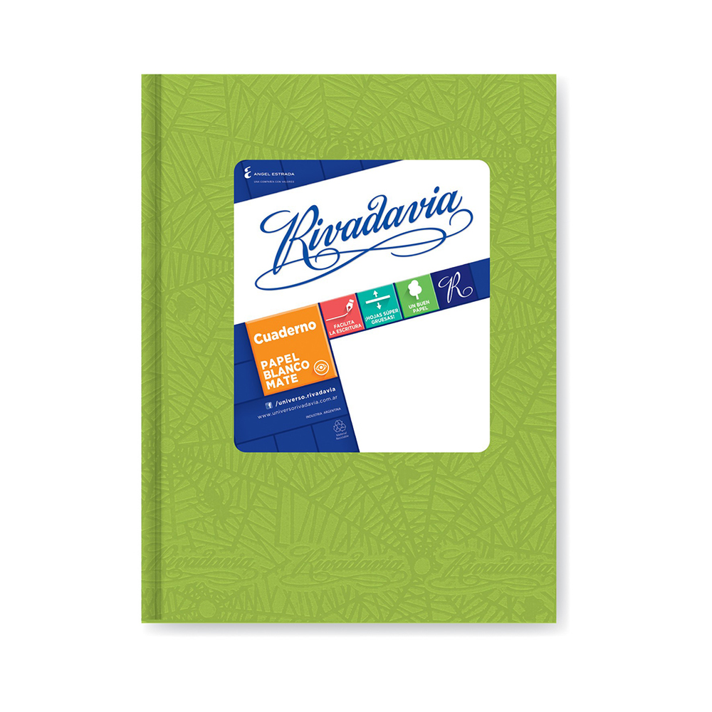 CUADERNO TAPA DURA 50 HOJAS RAYADO VDE MZA RIVADAVIA